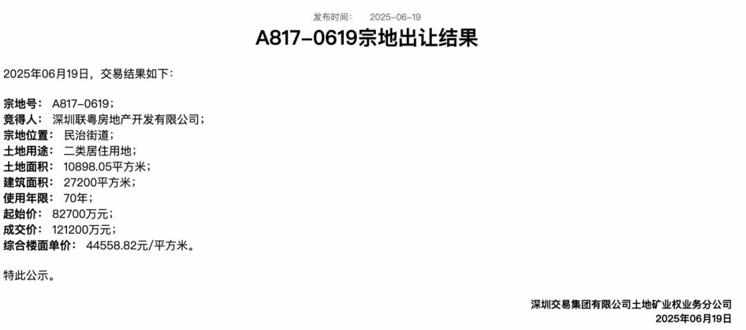 中指研究院深圳分院高级分析师孙红梅说:“A817-0619宗地的高溢价成交,反映了开发商对龙华核心地段的长期价值认可。联发集团的竞得体现其进一步深耕深圳市场的战略布局。”
